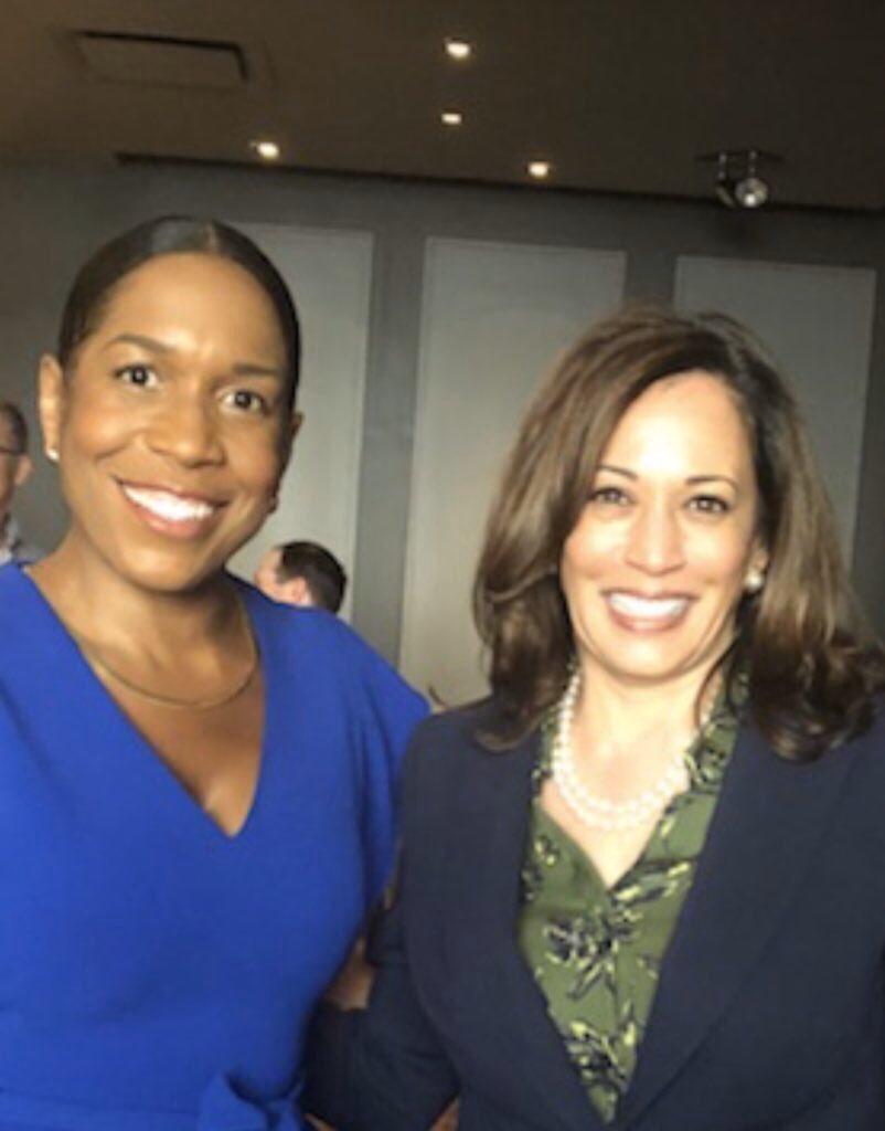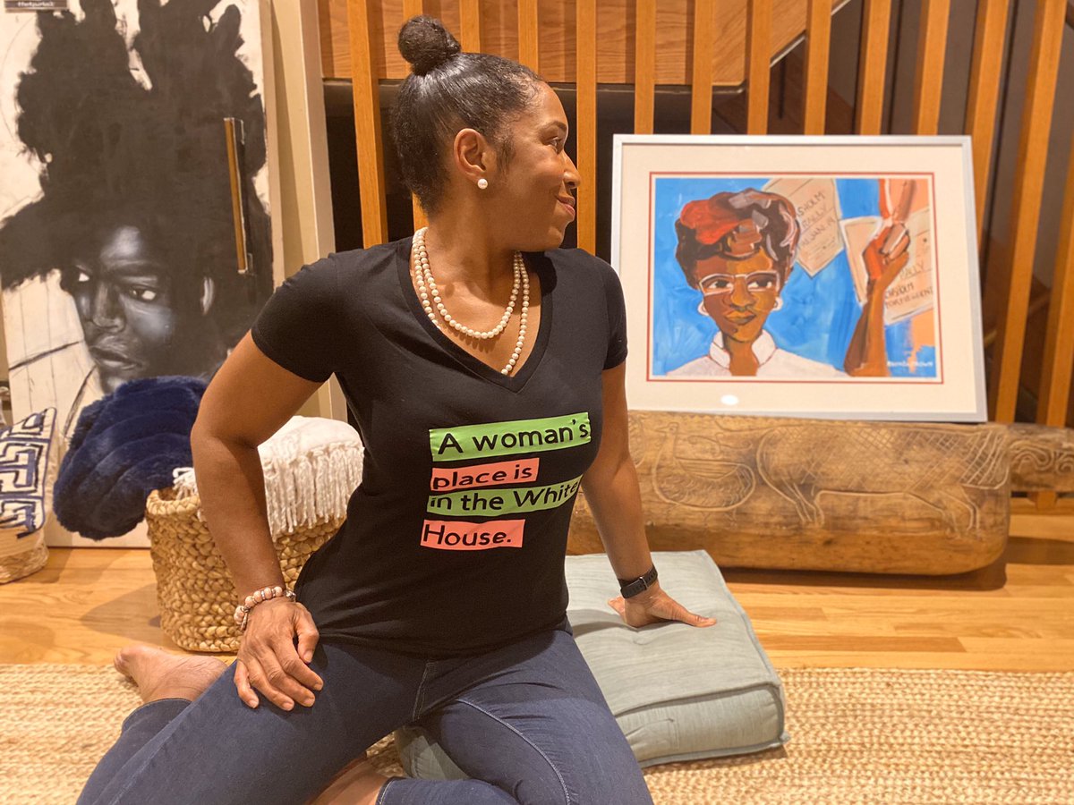 Looking back at Shirley Chisholm upon whose shoulders we stand. Looking into the future with Vice-President-Elect Kamala Harris as she helps lead our nation. A woman’s place is most certainly in the White House. Artist: @itsRhondaB pic.twitter.com/1j6YmwzXSW