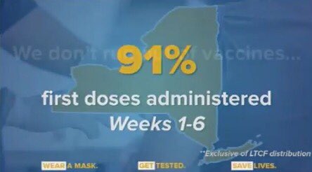 Per @NYGovCuomo, NY has administered 91% of #COVID19 first doses in weeks 1-6. But we need the federal government to send us more #vaccines so we can get them into the arms of all New Yorkers. #VaccinateNYpic.twitter.com/c9dqZ1KtVN
