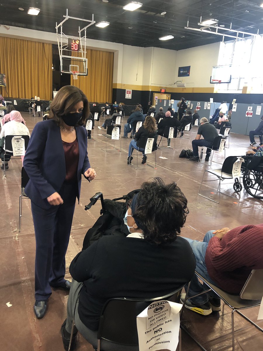 Spoke with grateful, hopeful Brooklyn residents at Medgar Evers @newsatmedgar who were excited to have received their second vaccine dose. I could see their smiles even through the masks. Thanks to our healthcare workers, @fema @NYSDOH and @UScoastguard. #VaccinateNYpic.twitter.com/jFY6LPMxr8