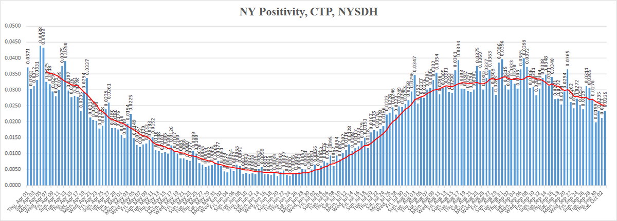Again, NYS number downward trends are really sustained by Downstate. Upstate counties still have >4% posivity rates. NYC today 1.34%. 7 of 30 deaths are NYC.
