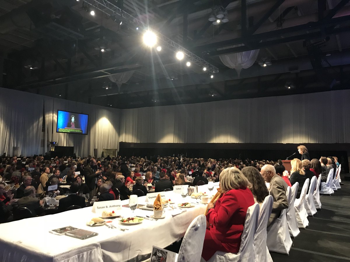 At Susan B. Anthony Luncheon, declared that her legacy commands us to expand voting rights.