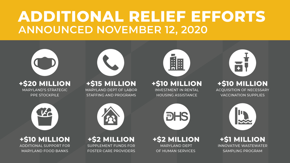 #COVID19 pandemic. Details: https://governor.maryland.gov/2020/11/12/governor-hogan-announces-70-million-in-new-investments-to-protect-the-health-safety-and-well-being-of-marylanders/ …pic.twitter.com/ieEzS6dXfz