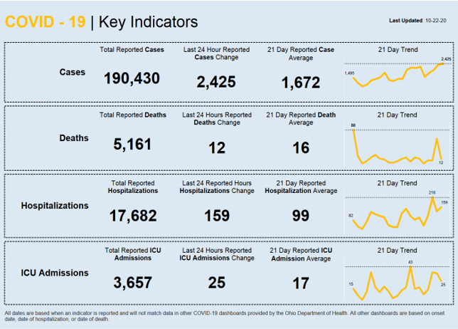 On October 9th, we had a total of 853 COVID-19 patients in the hospital. As of today, that number has grown to 1,293 patients. We must prevent overwhelming our hospital system to ensure that Ohioans can receive inpatient treatment for COVID-19 and other care.pic.twitter.com/xFQZGyBUTW