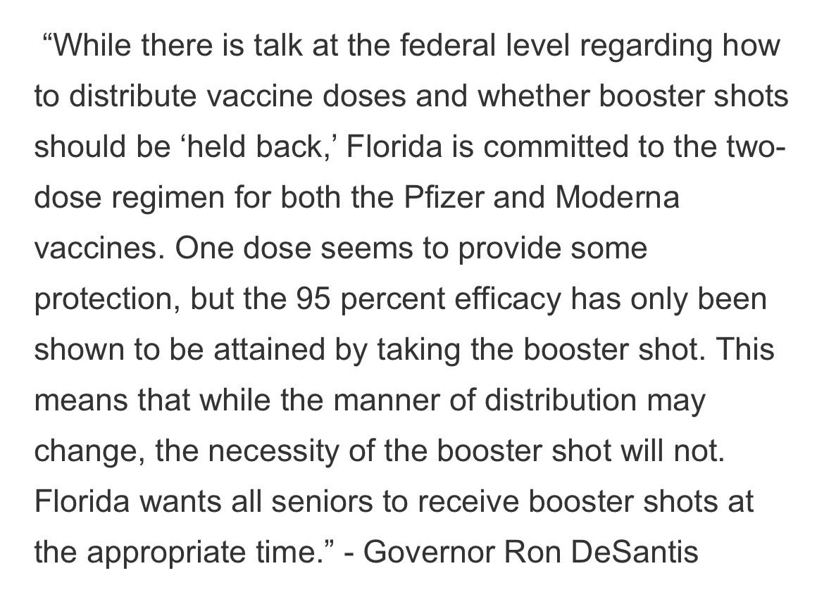 We’ve said from the beginning that the State of Florida is committed to prioritizing our seniors 65+ for vaccine distribution. It’s an effective approach that the federal government is now mirroring.pic.twitter.com/fJD0E82Lmp