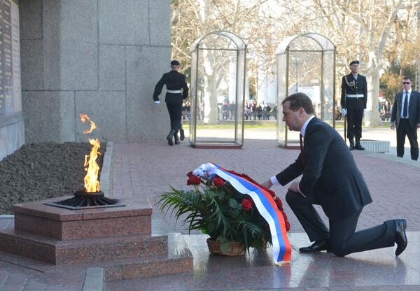 Dmitry Medvedev has visited the Malakhov Kurgan memorial site to commemorate the heroes of the defence of #Sevastopolpic.twitter.com/NES5eL2Toq