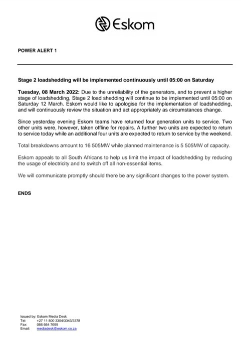 #Loadshedding until Saturday (12 March) at 05:00 am.pic.twitter.com/THgqn6Wgg9