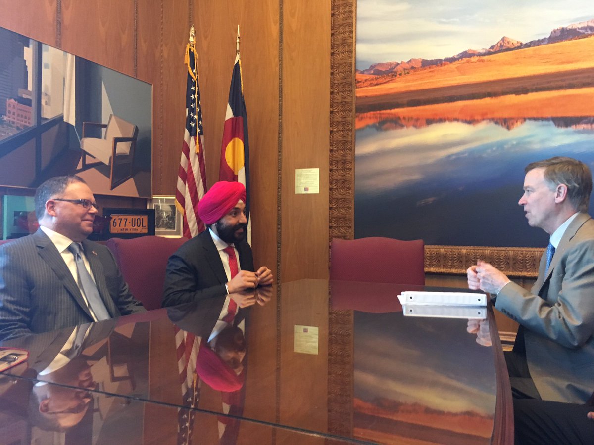 Took this beautiful day to welcome the Canadian Consul General Stéphane Lessard and Minister Navdeep Bains to the State Capitol! #COBeautypic.twitter.com/hqZRLSOb9D