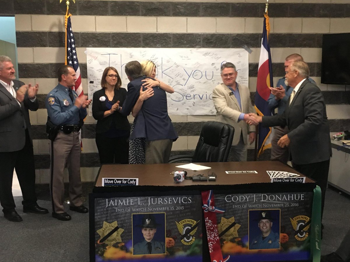 Yesterday we signed SB17-229 in honor of Trooper Cody Donahue. Drive safely, and please #MoveOverForCody #billsigningtour #2017COlawpic.twitter.com/Eb4gFRwLwi