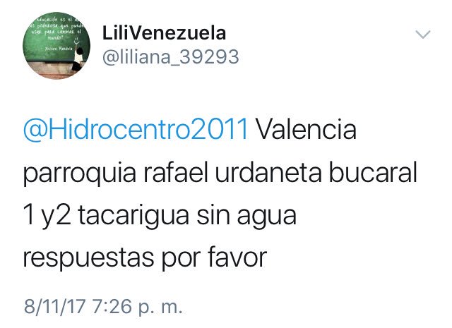@Hidrocentro2011 una solución urgente.#ValenciaSinAgua#Valencia#Venezuela#CaraboboThanks. Twitter will use this to make your timeline better. UndoUndo -