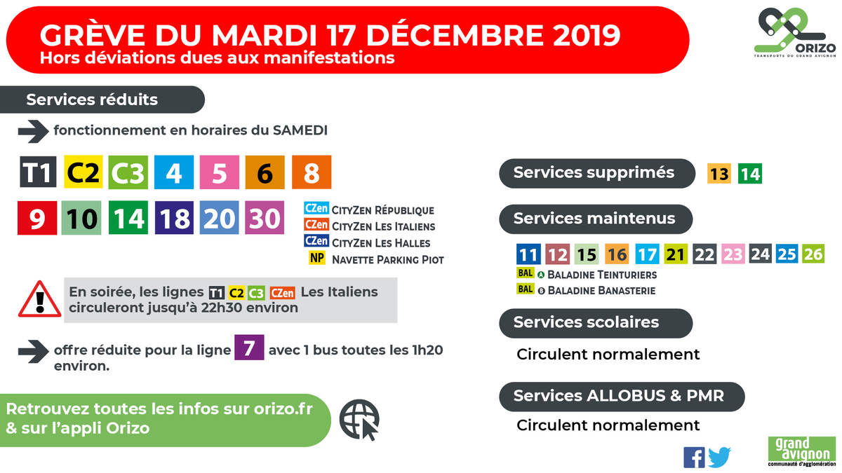 #Orizo Demain, jour de grève nationale, votre réseau de transport Orizo subira des perturbations. Plus d'infos sur ce lien : https://www.orizo.fr/ …/actualites/greve-du-mardi-17-decembre#grevenationale#transport#grandavignon#buspic.twitter.com/er7yPPxQcI