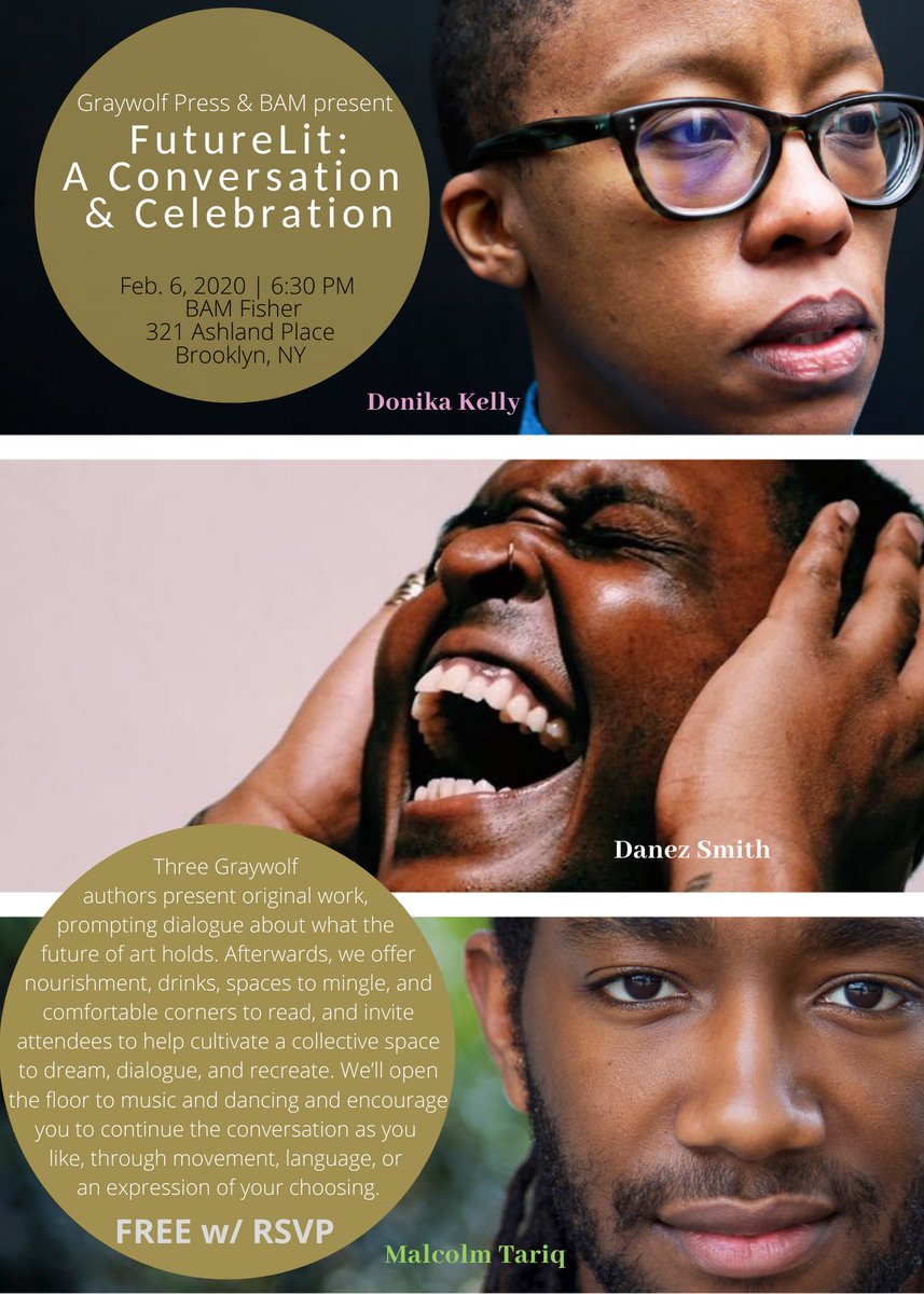 @BAM_Brooklyn and@GraywolfPress host FutureLit with poets#NBAwards Finalist@Danez_Smif and Longlister@officialdonika and@MalcolmTariq. Free and open to all, 2/6!https://www.bam.org/futureoflitHvala. Twitter će to iskoristiti za poboljšanje vaše vremenske crte. PoništiPoništi -