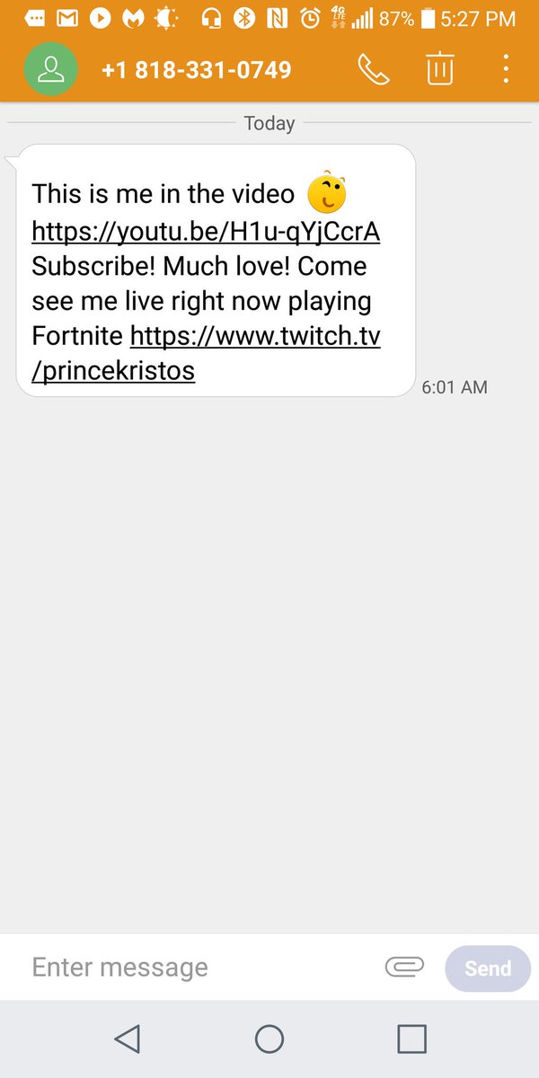@TeamYouTube @TwitchSupport So youtubers/twitch streamers spamming random stranger's phone numbers to beg for views is apparently a thing now. Please tell me you're going to crack down on thispic.twitter.com/zasI90puWC