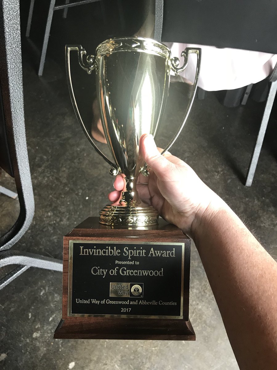 @GreenwoodCitySC rockin the@unitedwaygac awards today. The city was honored today for our fundraising campaign and Greenwood City Fire Marshal Tanner Hall received the “Jockey of the Year” award. We