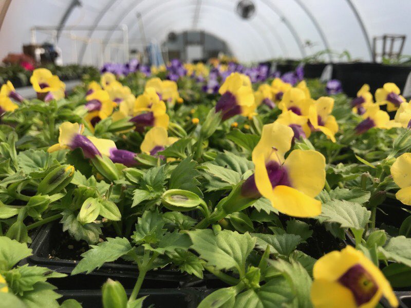 The pansies have to come out so our spring and summer plants can leave the greenhouse. If they don't get planted early they won't have enough roots to survive the heat. Be sure to let us know your favorite colors of pansies so we can get them next year.