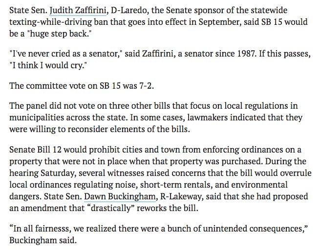 Galveston--with its hurricanes, tropical storms--should not have the same zoning laws & building ordinances as Pecoshttps://www.texastribune.org/2017/07/22/senate-committees-debate-local-control-measures/ …