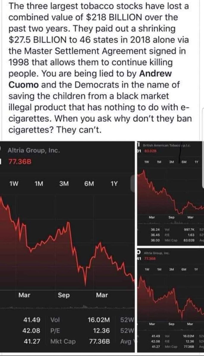 Not just big tobacco, but big pharma as well. If they lose money due to healthier people, then so do you. Is that REALLY what it's all about??pic.twitter.com/8QyH74YglU
