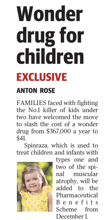 Life-saving Spinal Muscular Atrophy medicine to be made available to Australian babies Media Release: https://www.health.gov.au/ministers/the-hon-greg-hunt-mp/media/life-saving-spinal-muscular-atrophy-medicine-to-be-made-available-to-australian-babies …pic.twitter.com/4WiLzfz0Oi