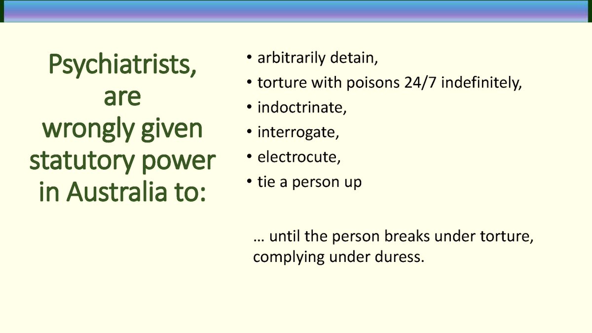 So many people I've met were silenced by psychiatrists when they attempted to speak out against their abusers. Silenced under arbitrary detention the torture of 24/7 experimentation on their person via psychiatrists & COAG legislators.