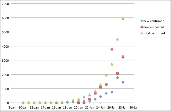 BREAKING: More good news from case count in China, today number of new confirmed cases is less than two days ago. While more than yesterday, this is additional indication that actions are getting ahead of the outbreak and stopping the exponential growth. (see blue dots)pic.twitter.com/t9y8VpCcL6