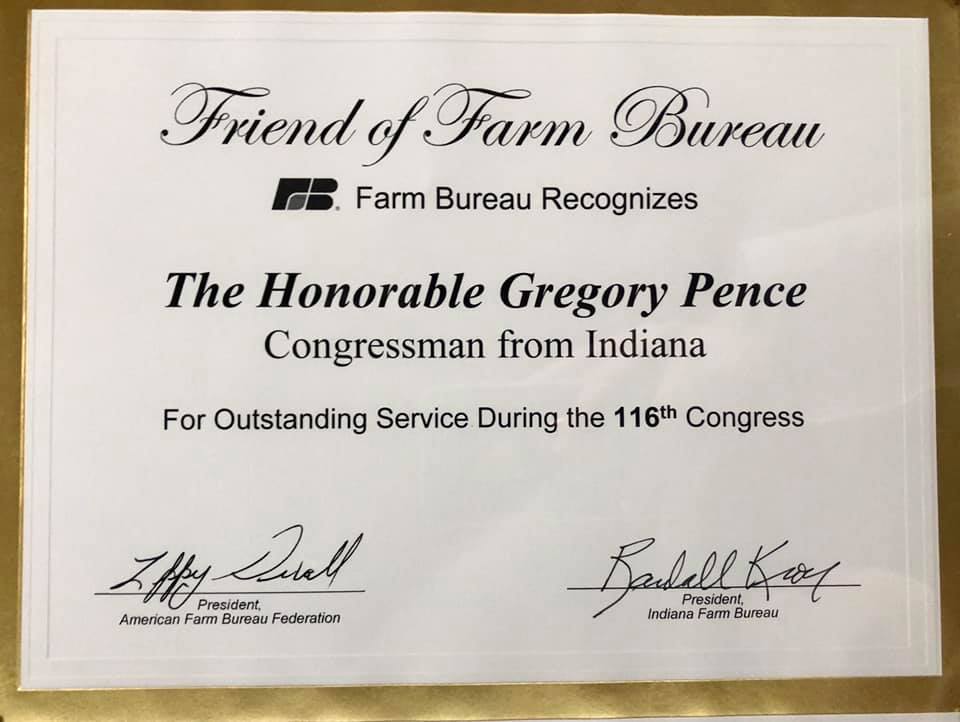 Yesterday I received the Friend of the Farm Bureau award for my service during the 116th Congress, from