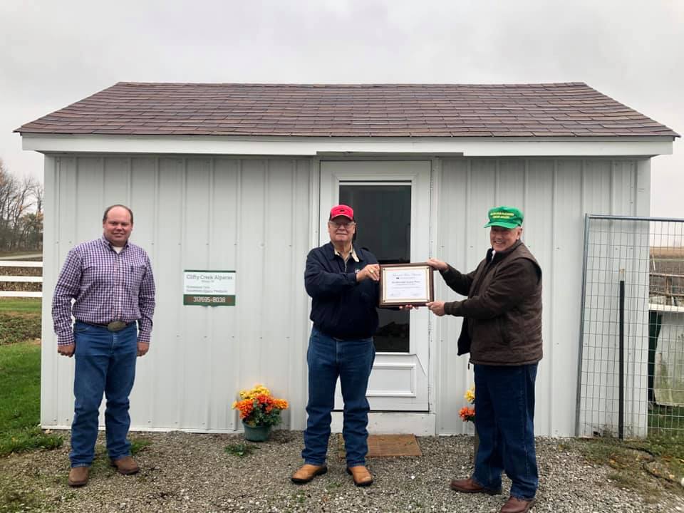 @INFarmBureau members Kermit Paris and Virgil Bremer. It is such an honor to receive. Thank you for having me at Clifty Creek Farms in Rush County!pic.twitter.com/C5jWbAyeQV