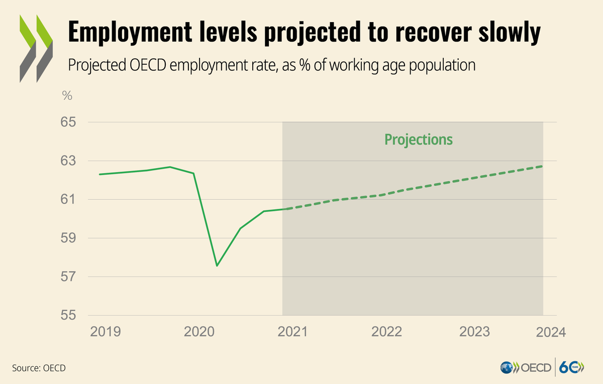 The jobs recovery will be sluggish in most OECD countries, with employment levels not expected to reach pre-