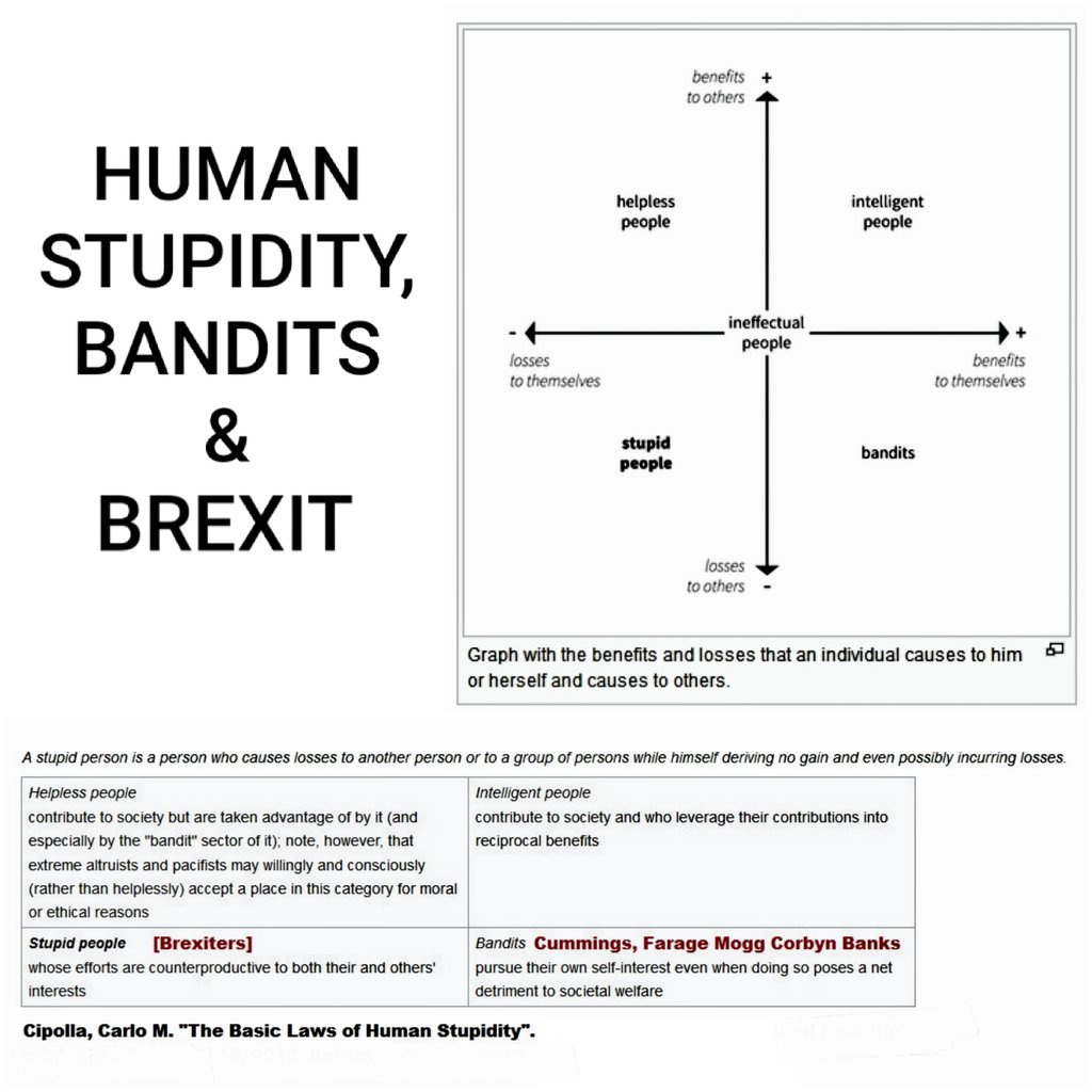 Love it! don't forget definition of 'stupid' people: "A stupid person is a person who causes losses to another person or to a group of persons while himself deriving no gain and even possibly incurring losses." - which fits brexiters exactlyhttps://twitter.com/BrexitBin/status/1223968193213030403 …