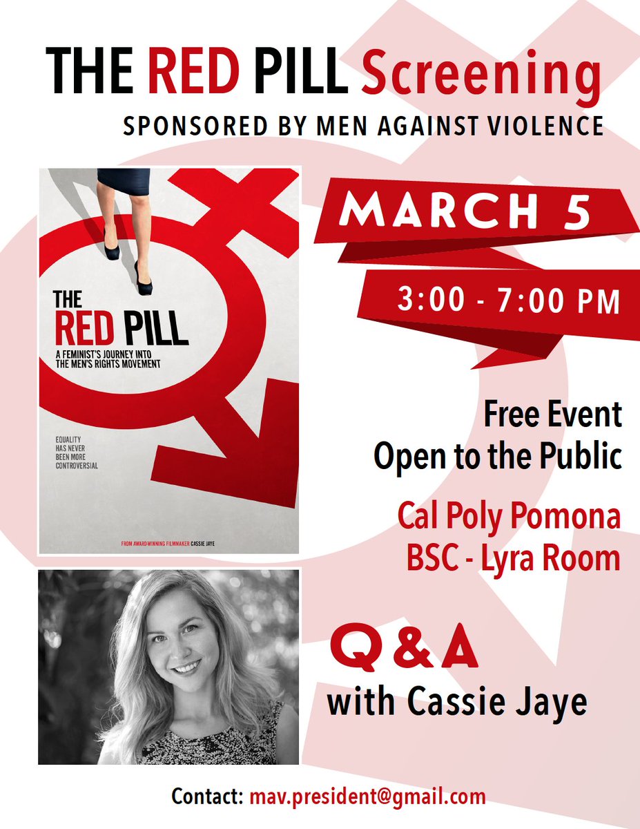 If you're in Southern California, please consider attending The Red Pill screening at Cal Poly Pomona on March 5th @ 3pm. I'll be there in person for a Q&A after the screening! It's a FREE event and open to the public, hope to see you there ~