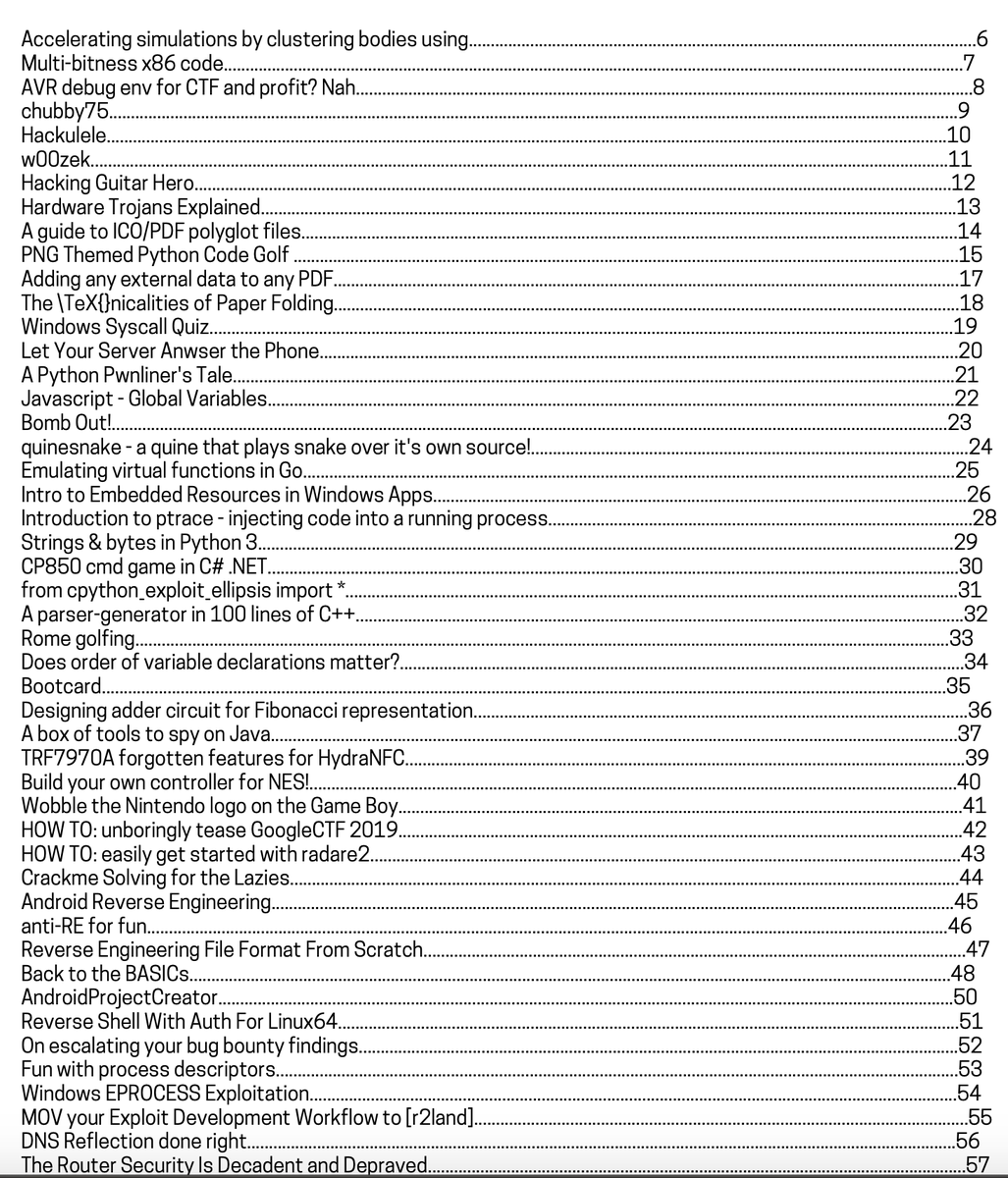 "Paged Out!" is a new zine that focuses on "micro articles". Just looking at the table of contents gets me excited. First issue: https://buff.ly/2P4A5u0 Makes me wish I was back in highschool with all the time in the world to just explore and screw around. Curse you, adult life!pic.twitter.com/nxENBjw0dW