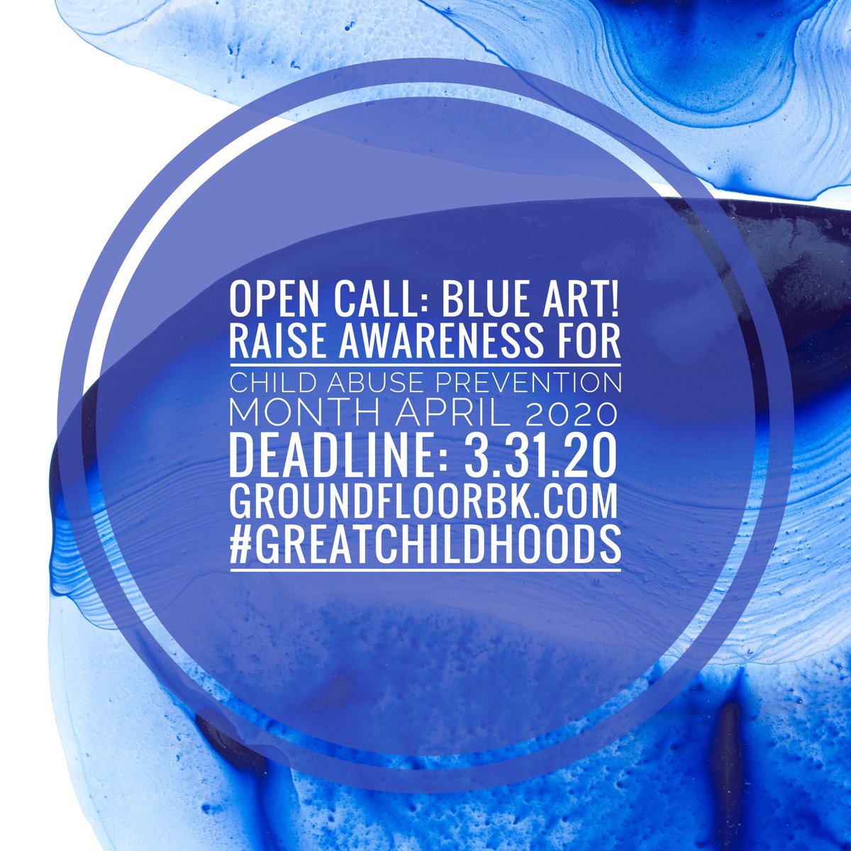 Open Call: We want your original, blue artworks! * We are proud to partner w/Chicago-based, Prevent Child Abuse America on the online exhibition, “Deep Blue See,” to raise awareness for Child Abuse Prevention Month: April 2020. Details at http://groundfloorbk.com .