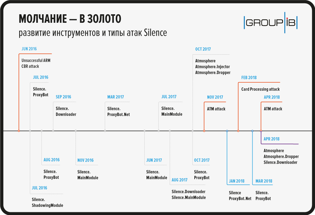 Хронология и характер атак #Silence говорят о том, что в начале своего пути преступники не имели навыков взлома банковских систем и во время проведения своих первых операций учились буквально на ходу. Скачать отчет: http://group-ib.ru/silence pic.twitter.com/0uN0WqcJXi