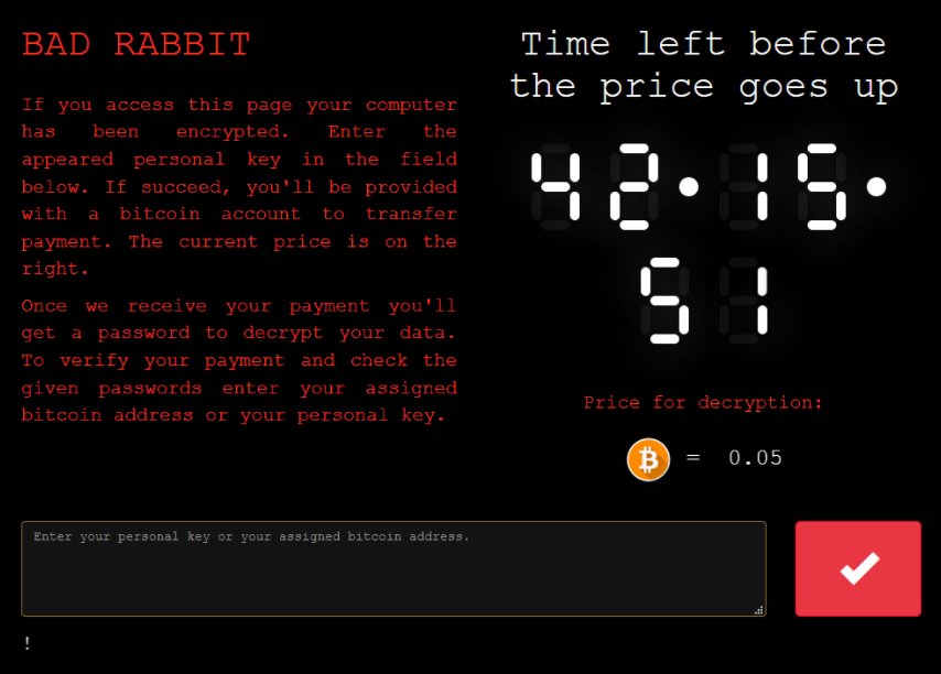 за разблокировку #BadRabbit требует 0,05 биткоина ($300)pic.twitter.com/i6KXfAexw1