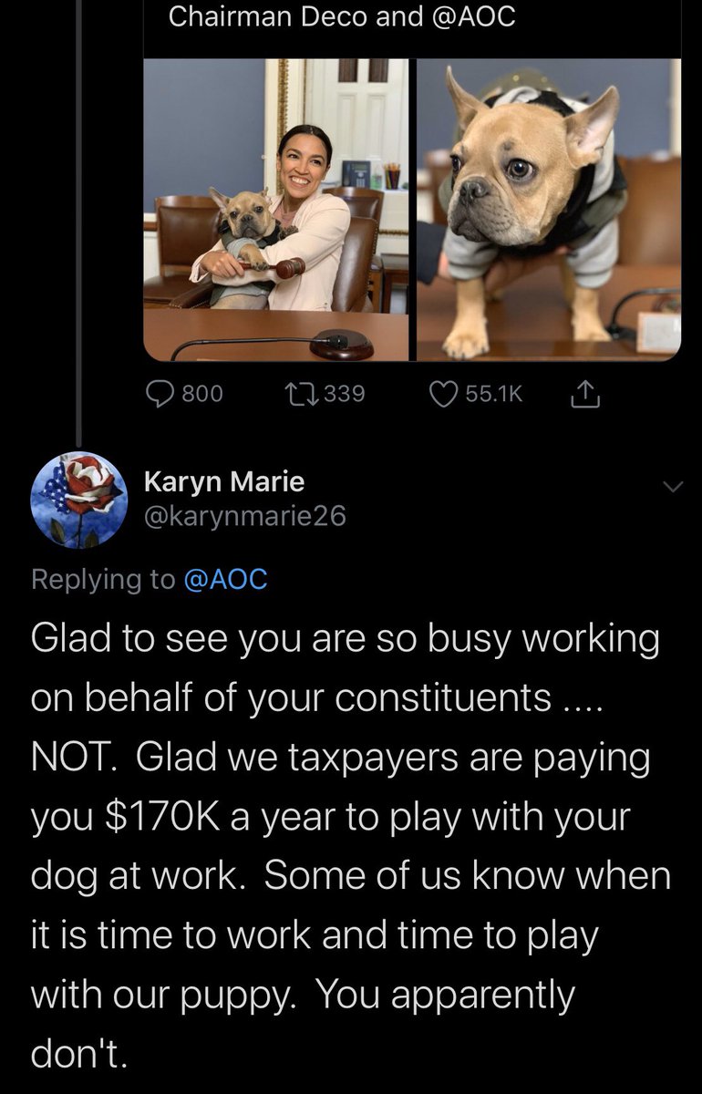 my new favorite category of reply guy is “conservative boomers angry about AOC’s dog”pic.twitter.com/QoHom8VdGh