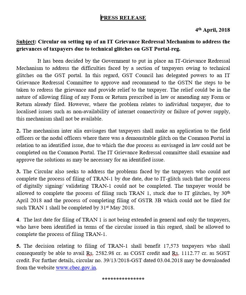 IT Grievance Redressal Mechanism to address the grievances of taxpayers due to technical glitches on GST Portalpic.twitter.com/mELDiQvzsi