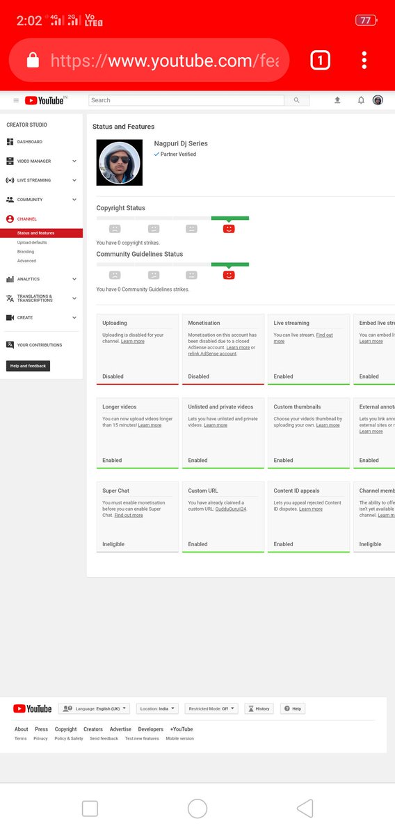 Video uploading tab is disabled on my YouTube channel.