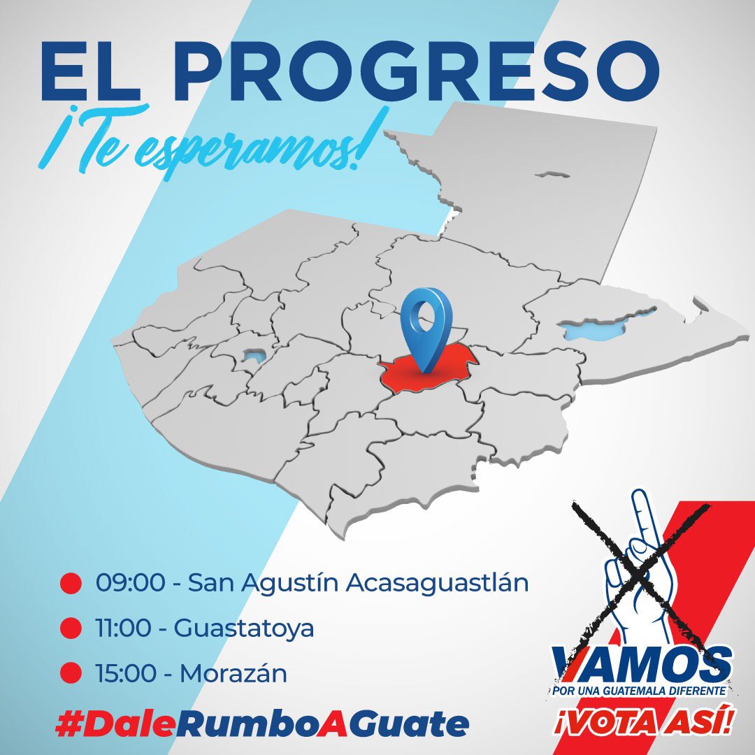 Acompáñame hoy en El Progreso, VAMOS a darle rumbo a Guate ☝🏼 #DaleRumboAGuate #VamosEnSerio #VotaXVamospic.twitter.com/LZEeDRNUBP