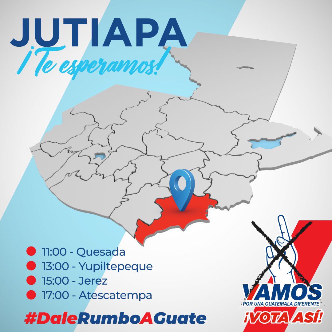 Estamos recorriendo el país departamento por departamento, hoy continuamos junto ustedes en Jutiapa. ¡Vamos por el cambio! #VamosEnSerio #DaleRumboAGuate ☝🏼pic.twitter.com/o61cFSEiiP