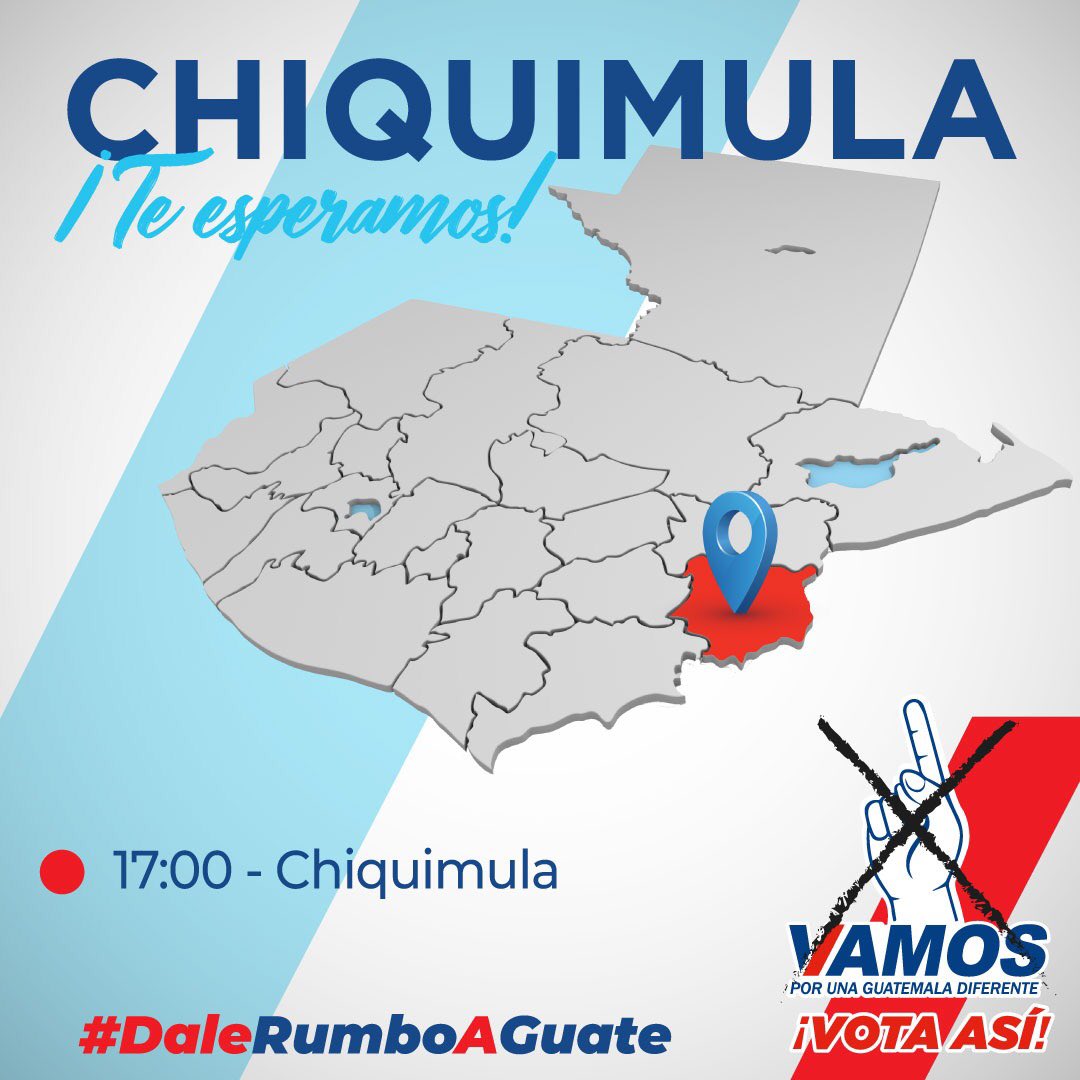 Chiquimula #VotaXVamos ☝️, acompáñame hoy y #DaleRumboAGuatepic.twitter.com/F3SjeH3tZU