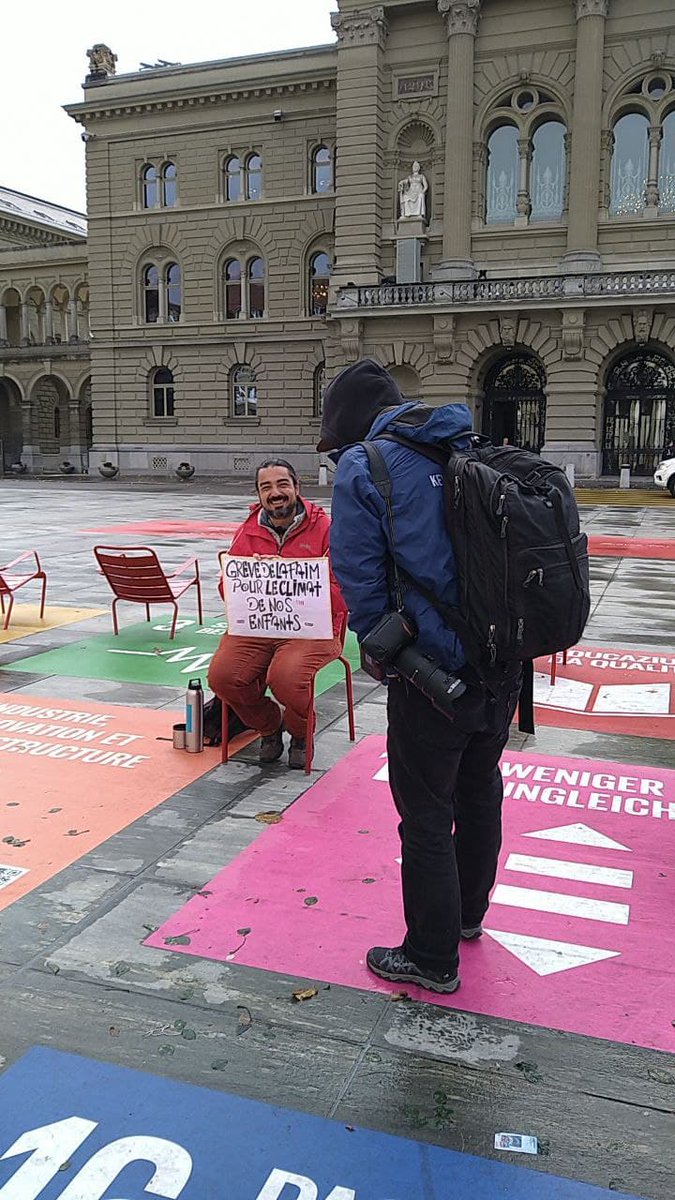 Just a Dad terrified for his children's future. On hunger strike as long as the 🇨🇭 Parliament hasn't received a training on the climate & ecological crises.