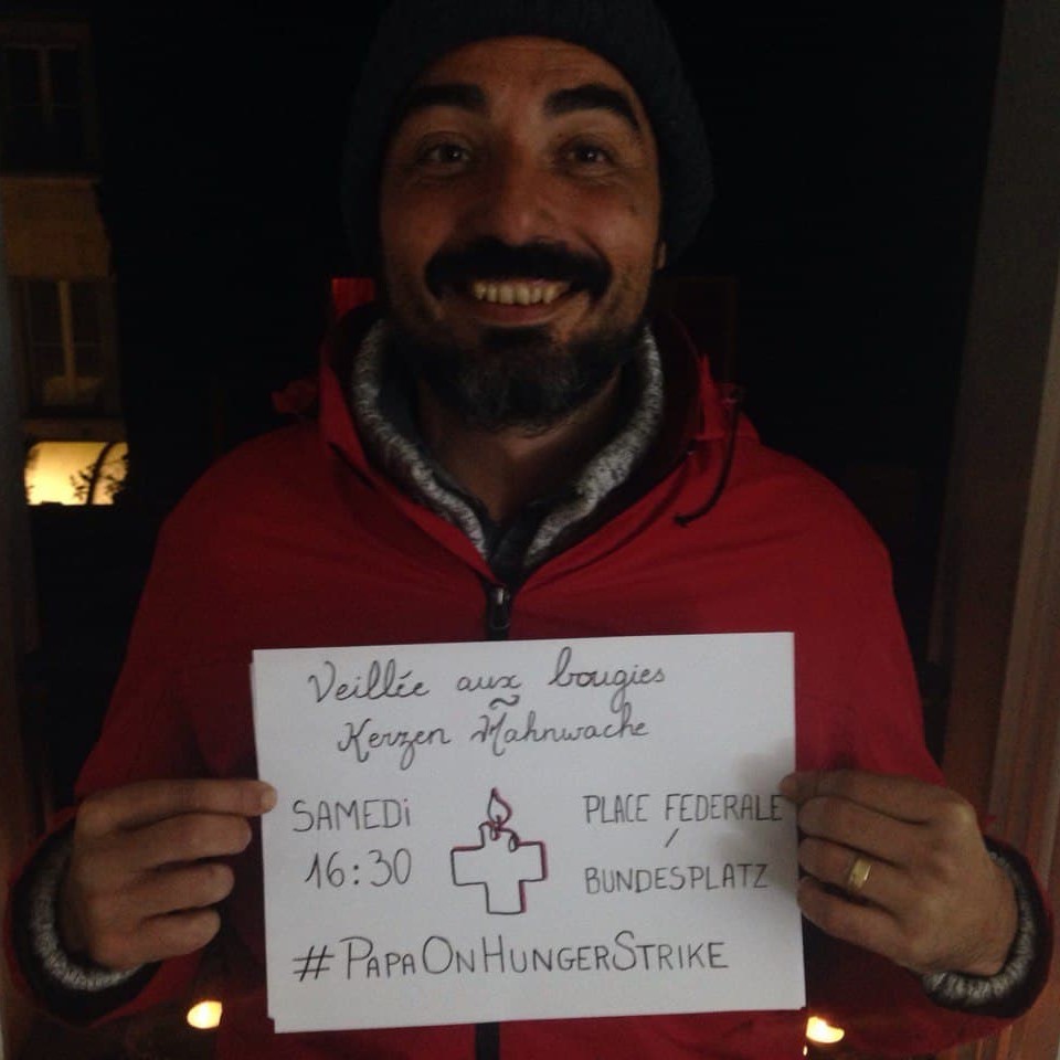 Komm und feier das Leben mit mir, jeden Samstagabend um 16.30 Uhr auf dem Bundesplatz, zu einer Kerzen-Mahnwache, voller Freude und Hoffnung. #PapaOnHungerStrike pic.twitter.com/Ay665vi0Oa