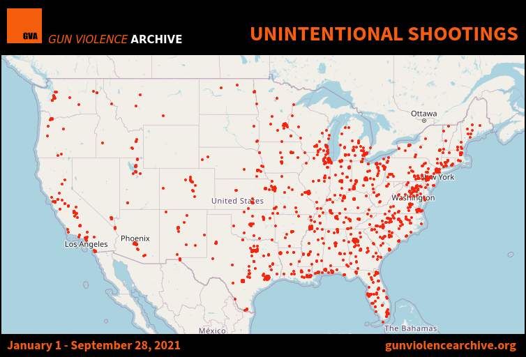 •1,000+ unintentional shootings