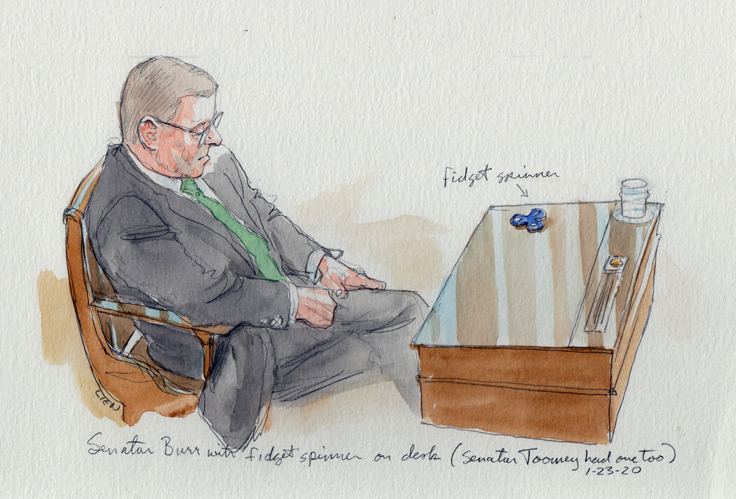 Art Lien sketches the impeachment trial for the NY Times. https://www.nytimes.com/interactive/2020/01/16/us/politics/senate-impeachment-trial-sketches.html …