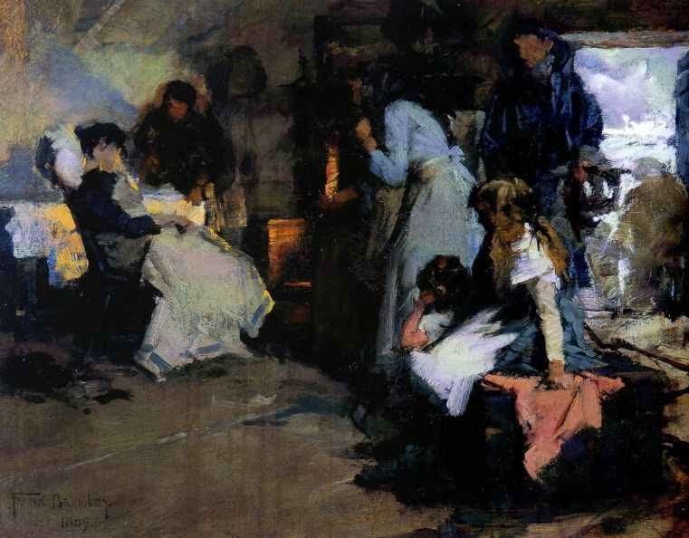Frank Bramley painted the life of fisherfolk of Cornwall, England using painting methods of French painters such as Manet and Bastien-Lepage.