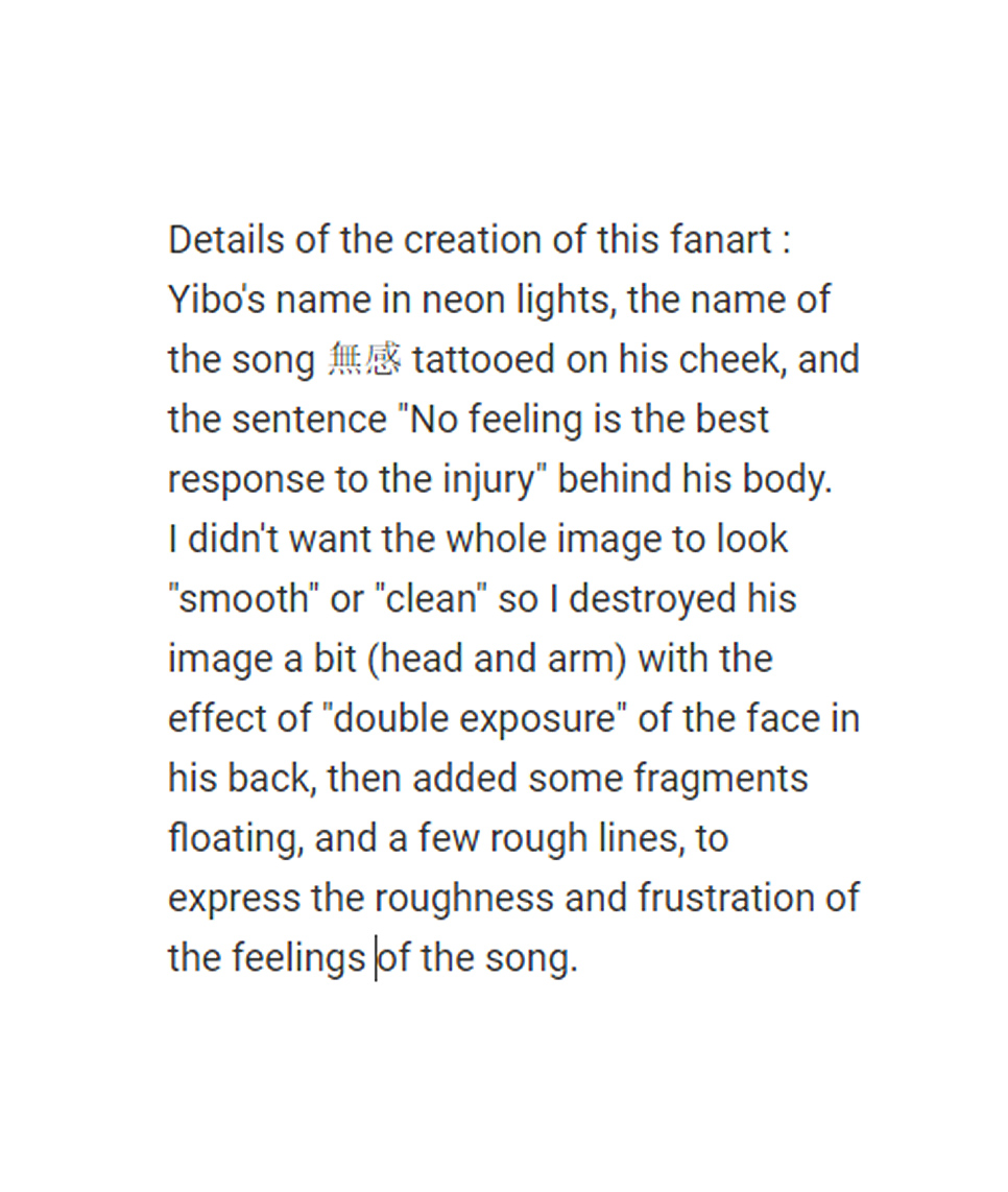 "Attacked, ridiculed, provoked, No feeling is the best response to the injury" Wu Gan 無感, Wang Yi Bo.