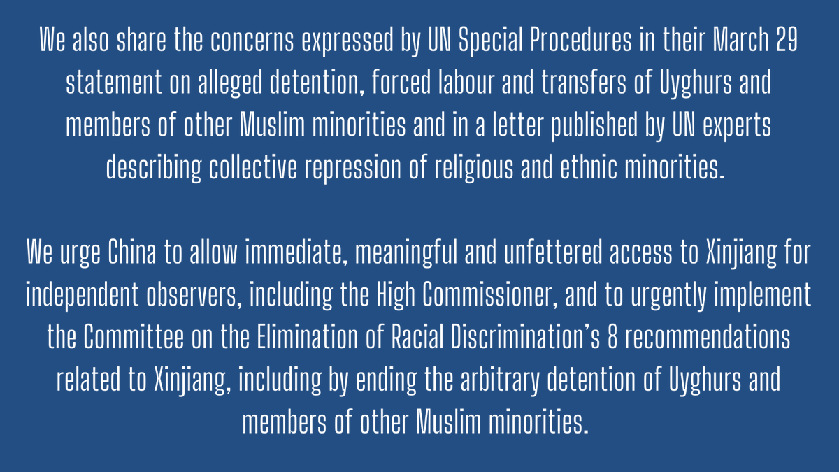 Grateful for Canada's leadership on the joint statement condemning human rights abuses in Xinjiang, Tibet, and Hong Kong at the 47th session of