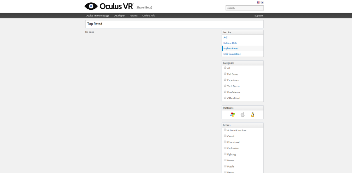 @oculus Site over capacity? I keep getting "no apps"