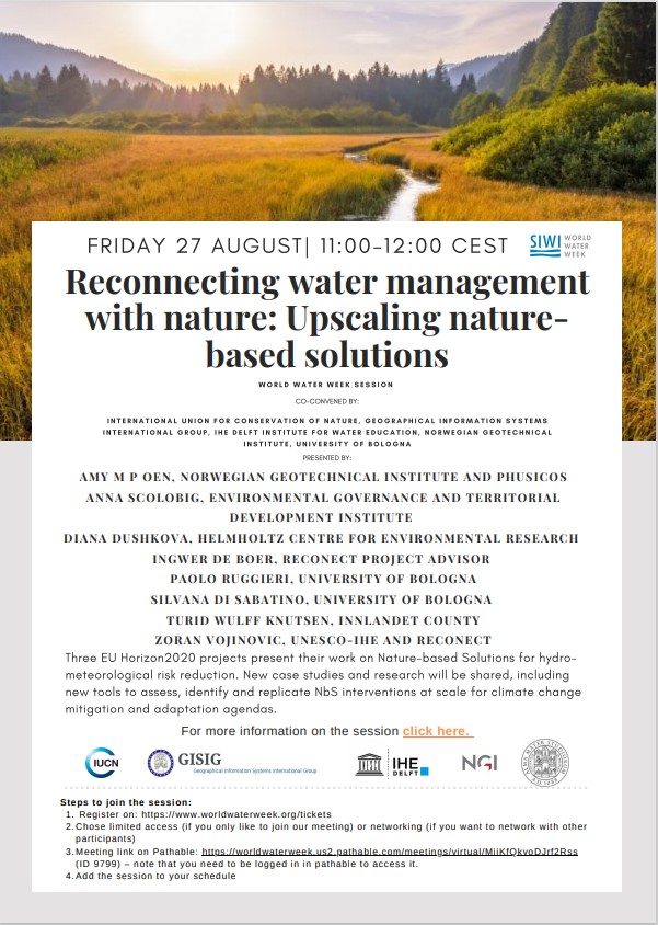 The recent floods and droughts across the world have brought the urgency of good water management even more to the front. How can Nature-based Solutions help, and how can we bring them to scale? Join us at
