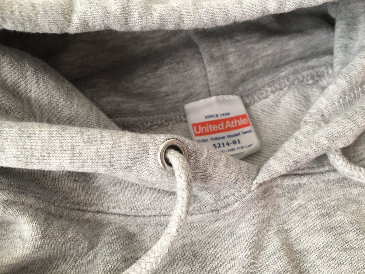 数年前のパーカーとの違いは、生産メーカーがPrintstarからUnited Athleに変更、フードの紐を通す部分に金属がついた、ポケットのステッチが微妙に変わった、裾や袖のゴム部分の比率が小さくなった、って感じかなpic.twitter.com/vSCEmiCWrG