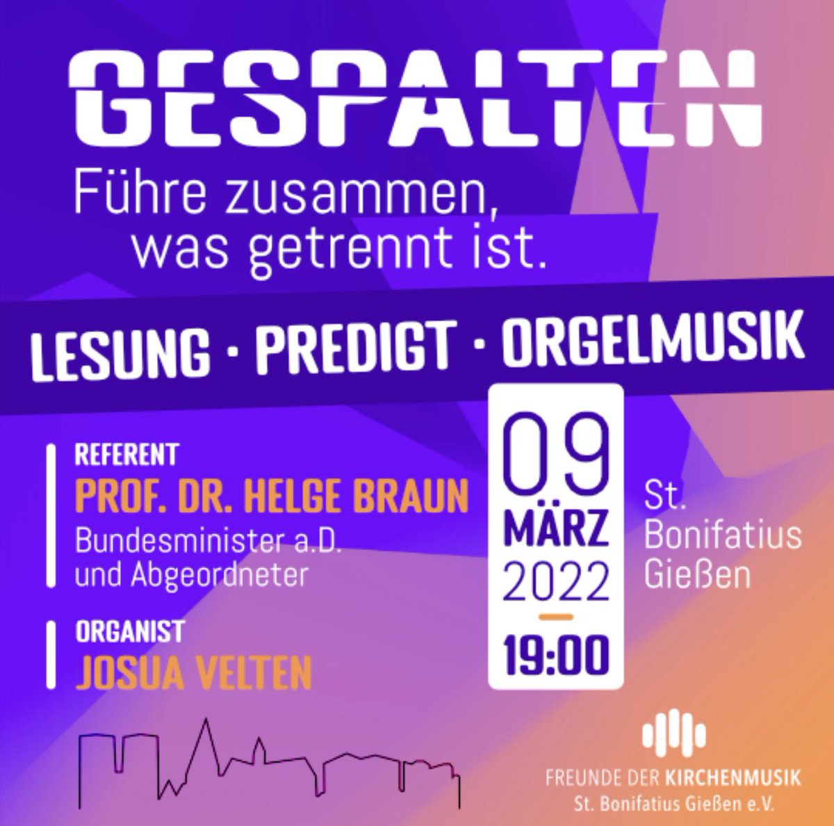 bereitet gerade seine Fastenpredigt für Mittwoch 19 Uhr in der Kirche St. Bonifatius in Gießen zur Überwindung der Spaltungstendenz in der Gesellschaft vor. Alle Infos zum Termin: https://bistummainz.de/pfarrei/giessen-st-bonifatius/aktuell/nachrichten/nachricht/Gespalten-fuehre-zusammen-was-getrennt-ist/ …pic.twitter.com/LzvqiNBrLm – At Katholische Kirche St. Bonifatius