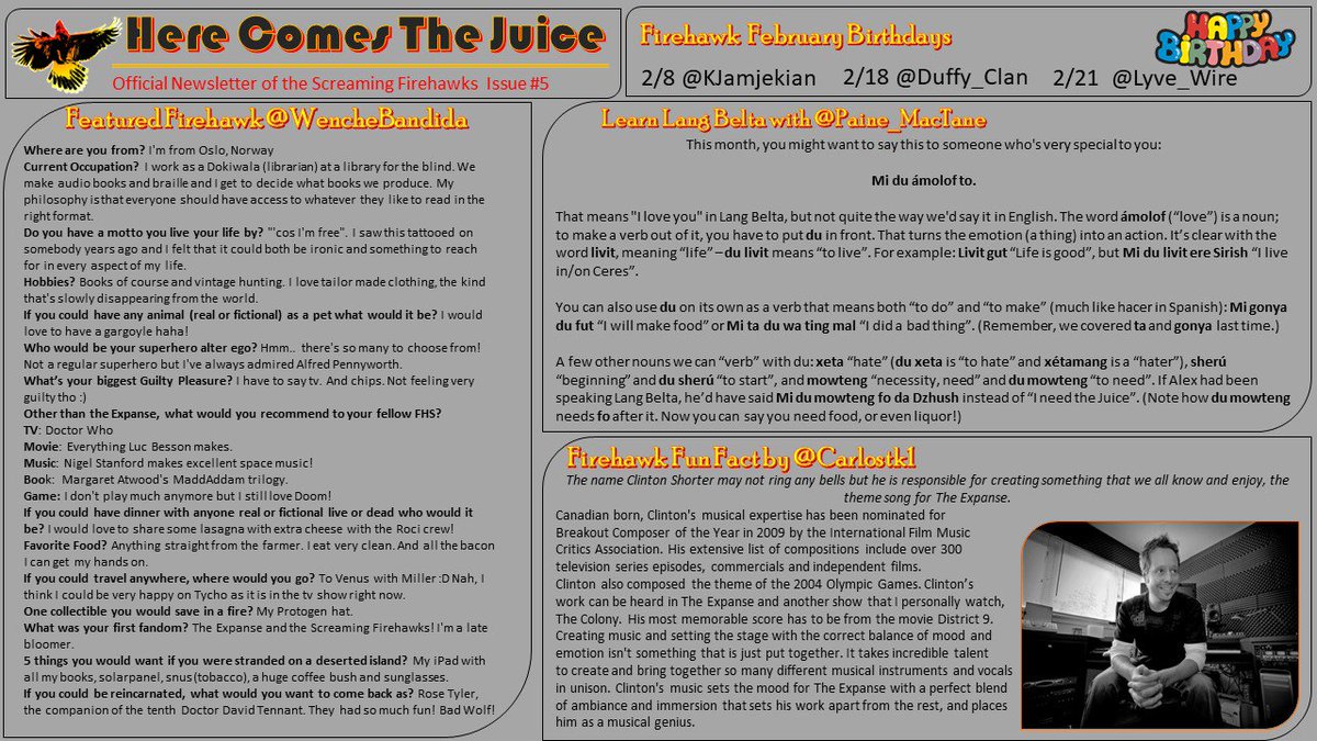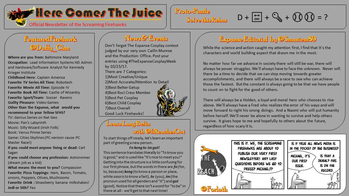 #ScreamingFirehawks and Enjoy the Ride!#HereComesTheJuice The latest edition of our Community Newsletter.#TheExpanse